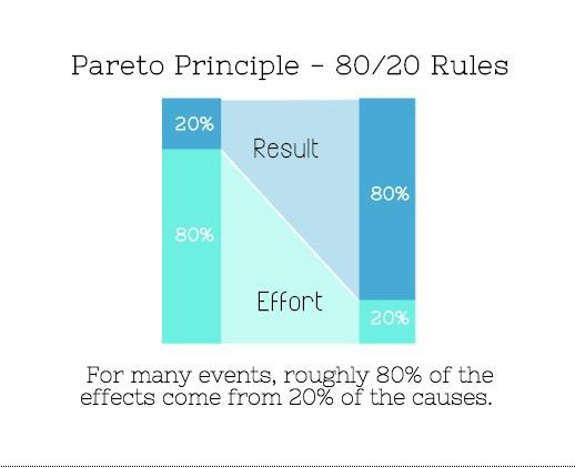 根据80/20 法则(Pareto Principle),20% 的努力创造80% 的成果,20% 的成果消耗80% 的时间。 不是努力工作,我们应该把注意力放在创造80% 的结果并放弃其余的。 我们应该把更多时间放在重要的任务。 我们应该停止对低效能与无效能的任务说:「好的,我来做」 。