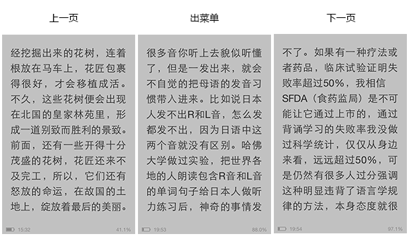 万事俱备,只欠用户,邀约来的用户中必须包括有手机阅读经验和无手机阅读经验的用户,随机截取书本的某三页的图片,如下: