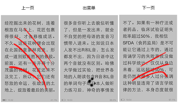 下图是软件记录的用户分别翻下一页、出菜单和翻上一页的操作轨迹。