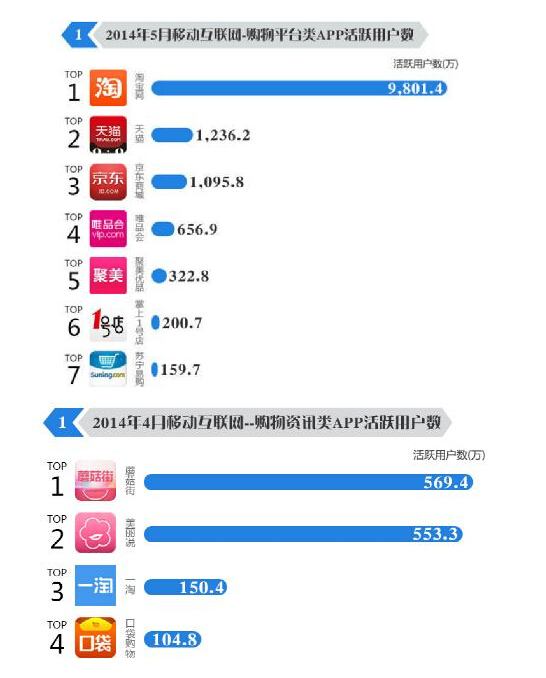 据易观国际的数据显示,截止到今年5月份,国内移动电商前十名的大玩家均源于传统PC端电商,纯粹的移动电商只有买卖宝、口袋购物等少数新秀。