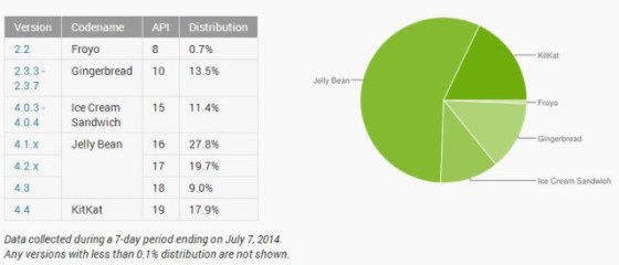 以新的Android版本份额统计来看,Android 4.0以下的份额已经不及15%了,因此,Russel Ivanovic认为,Android 4.0以上版本的前景明显更好,因为Android非常巨大的市场份额,他们完全可以忽略掉还在使用Android 2.3的用户,转而聚焦Android 4.0以上的用户。这种情况也发生在iOS上,Russel Ivanovic支持iOS 7及以上系统,老版本遭到了无情的舍弃。即使放弃这部分较低Android版本的用户,Android的用户基数还是大于iOS。