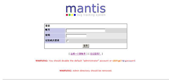 打开浏览器,访问http://127.0.0.1/mantisbt-1.2.17/login_page.php,登录界面有两个警告,如图: