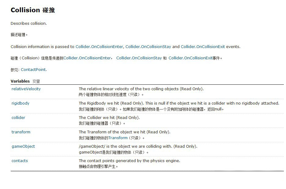 这里本人用到的比较多的是gameObject这样我们可以获得那个碰撞的对象,这样我们可以通过获得的对象来查到更多被碰撞到对象的更多的属性,这样方便我们来操作!