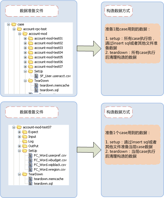 1. 数据(包括DB,server文件,桩文件)一次性构造好放那不动,无法保证数据不被污染,且移植性受限;