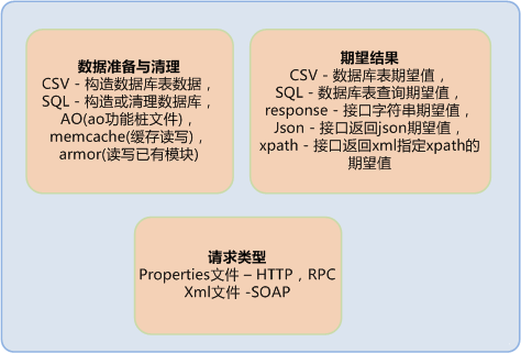 itest在扩展性方面,通过“以文件后缀作为识别标签,新的功能需求,约定一种新的文件后缀”,itest维护人员在框架内开发相应的分支逻辑,而case编写人员则只需按照文件约定格式设计文件即可。如下为目前支持的不同文件,以及相应的不同逻辑功能: