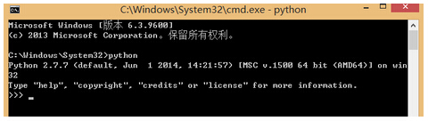 安装完毕后,在环境变量中添加Python的安装路径。这样才支持在命令行下执行Python命令。如果你命令行下出现如下界面,证明安装成功: