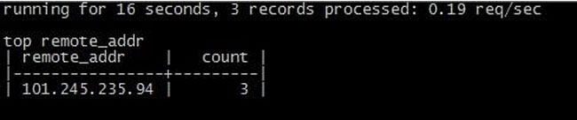 # ngxtop -c /usr/local/nginx-1.5.2/conf/nginx.conf top remote_addr