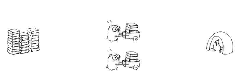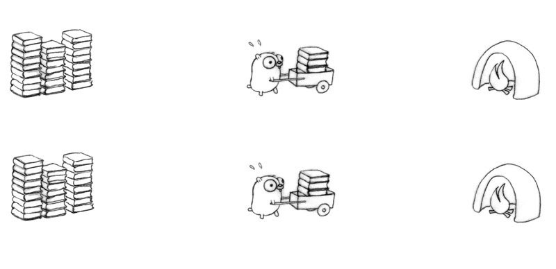 这种设计仍是并发,不是并行。[译者注:一只地鼠运一次上面那堆书,然后第二只地鼠再运一次下面那堆书。一次只允许一只地鼠运送,这样不是并行的。]