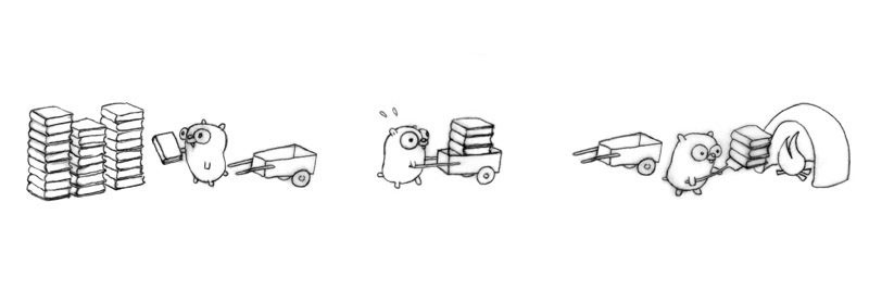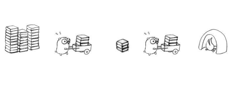 我们有四个并发的步骤:1.装书到推车上2.把推车运到火炉边3.把书卸到火炉里4.运回空推车