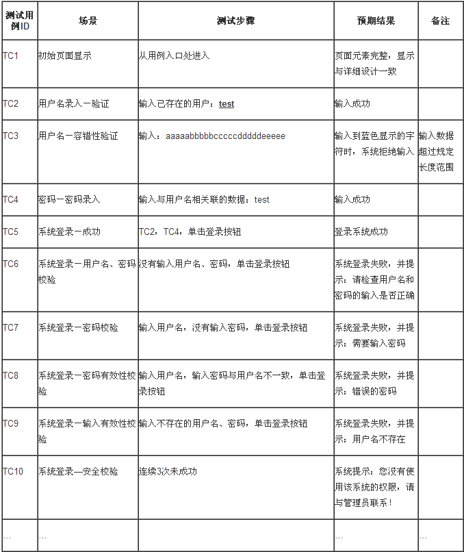 该测试案例是以一个B/S结构的登录功能点位被测对象,该测试用例为黑盒测试用例。假设用户使用的浏览器为IE6.0 SP4。