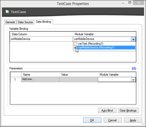 这样做之后,对'Run Mobile App' 的'Device Display Name'列进行参数化,改成模块变量。