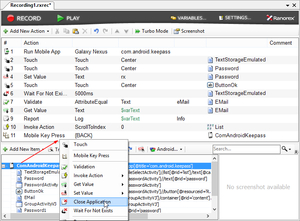 图:添加“Close Application”action,以确保录制的脚本在正确的设备上执行