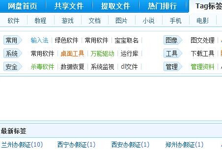 图为某网盘平台的tag页面中,新的标签内容,其中涉及到违法信息。