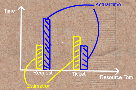 好像不太复杂嘛?不过,真实的系统能够为资源分配多种类型的任务,当然从技术上讲这也不是多么复杂的设计。但当我初次看到系统的代码时,我感觉自己似乎看到了一件老古董,从中看得出代码是如何从开始逐步进化的(或者不如说是退化的)。在一开始,这一系统仅能用来处理请求,之后才加入了处理票据以及其它类型任务的功能。某位工程师开始编写代码以处理请求:首先从数据库中获取数据,随后按照饼图的方式显示数据。他甚至没有考虑过要将信息组织为合适的对象: