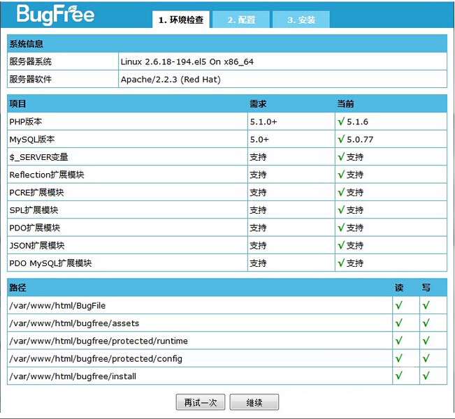 上面如果没有安装要求准备LAMP的软件,在环境检查时会报错的。