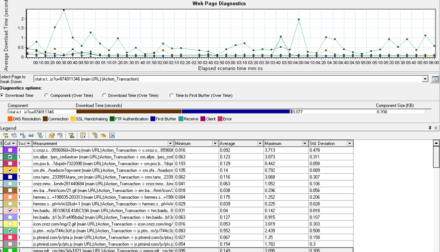 3、根据单请求元素响应时间图、Download时间图、First Buffer图,确定性能瓶颈。