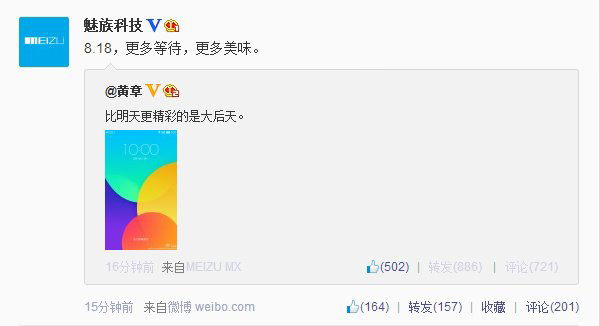 8月18日,魅族将有MX4和Flyme 4.0新动作
