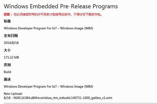 需要注意的是,该款Windows镜像为非商业版Win8.1版本,开发者用户需提前注册Windows IoT项目(点击这里),即可免费下载部署该款Win8.1定制版系统,从事物联网应用开发工作。