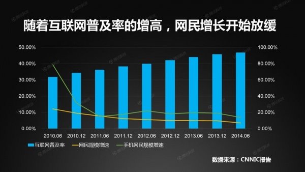 但随着互联网普及率的提高,网民增长以及手机网民增长都开始不同程度地出现放缓。