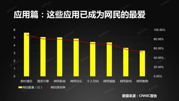 从应用方面看,即时通信、搜索引擎、网络新闻,是中国网民上网时经常用到的三大应用。