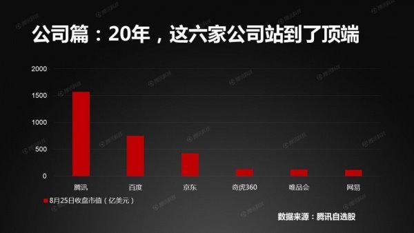 20年的时间,有很多互联网公司诞生,也有很多互联网公司被淘汰出局,这六家公司是当前市值高的六家互联网公司。