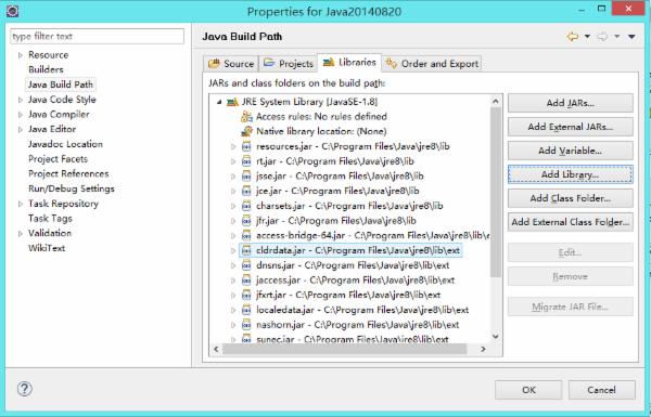 在编写测试用例之前,需要先引入Junit。对项目根目录右键,选择Properties,Java Build Path,Libraries,如图: