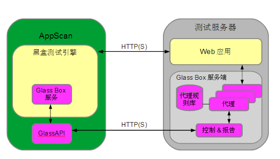 Glass Box 是 IBM Security AppScan Standard Edition(以下简称 AppScan)8.5 版本以后引进的一个新的组件,是对 AppScan 的一个比较大的改进。Glass Box 引进了运行时分析的技术,通过部署在服务器端的代理,在探索和测试阶段搜集 Web 应用程序信息,并进行分析,进而反馈给 AppScan,使 AppScan 更有针对性的进行探索和扫描,提高了扫描的精确性,并有利于发现更多的漏洞。
