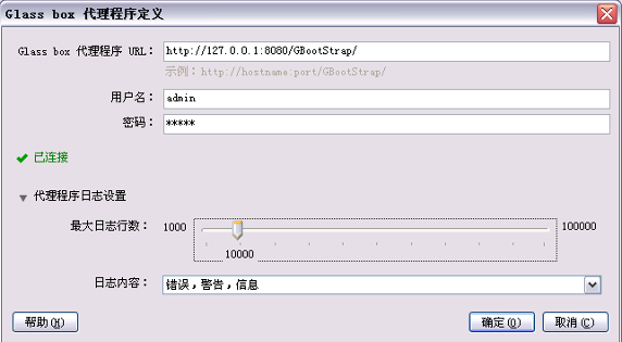 代理程序的用户名和密码分别为安装 Glass Box 时设定的用户名和密码,如需要修改密码,可运行 AgentCredentials.bat <username> <password> ,或直接修改位于 GBootStrapWEB-INF 目录下的 users.xml 文件,重启 Tomcat 后生效。用户可添加多个 Glass Box 代理程序,但 AppScan 同一时间只能使用其中的一个。添加代理程序成功后,可对 Glass Box 进行设置,选中"在探索阶段使用 glass box ",可发现更多的隐藏的 URL;选中"在测试阶段使用 glass box",可发现更多的漏洞和提供更详细的漏洞信息。配置成功后,AppScan 右下角状态栏将显示"Glass box 扫描:已启用"。