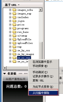 3、从左边的应用程序树状结构中,选择不希望测试的节点,单击右键并选择“从扫描中排除”。