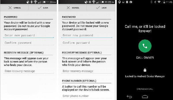 本次更新中,除了可以设置一个锁屏密码之外,用户可以在锁屏界面上写一句话,这样捡到你手机的人可以看到了,不仅如此,可以添加一个电话号码,这样中间会有一个“给手机所有者打电话”的圆形按钮,这样捡到手机的好心人可以打电话给你了,这些都可以通过网站设置,不仅仅是移动应用。