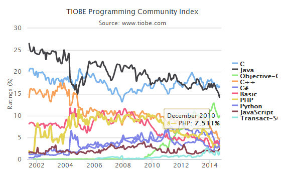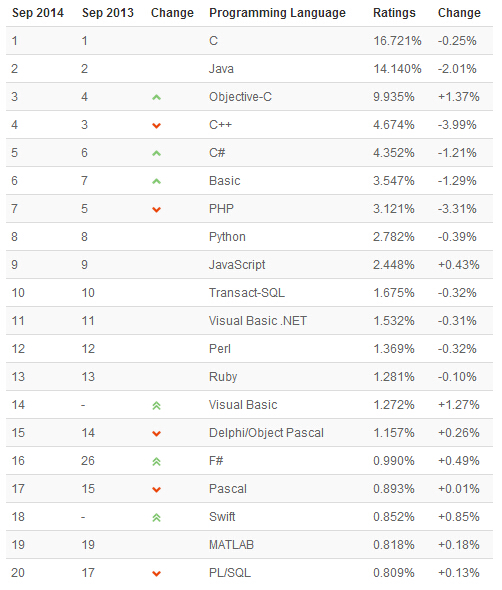 14年9月编程语言排行榜:Java、C++跌至历史低点