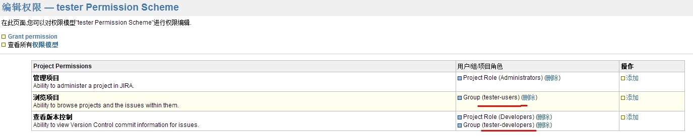 我们可以打开tester的权限模型然后对相应权限应用的用户组进行更改