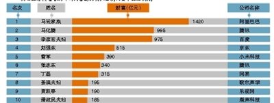 胡润研究院发布胡润百富榜子榜之一的《2014胡润IT富豪榜》,50岁的马云及其家族以1420亿元的IT业财富首次成为“IT首富”。去年的IT首富马化腾以995亿退居第二。李彦宏以975亿位列第三。BAT三巨头共在IT领域积累3375亿元的财富,相当于上榜富豪总数的39.9%。