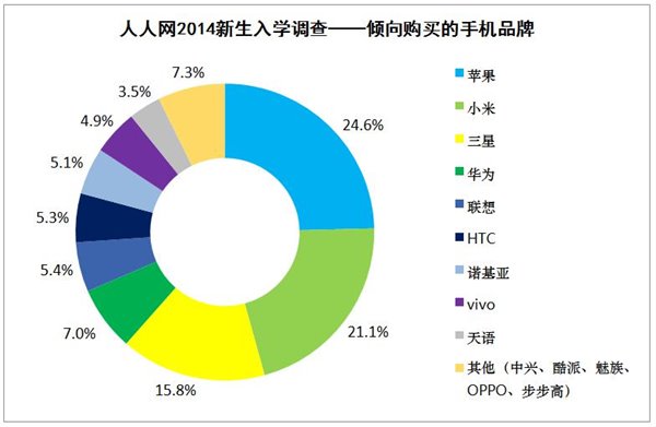 手机与平板电脑苹果完胜,小米成大一新生倾向购买手机