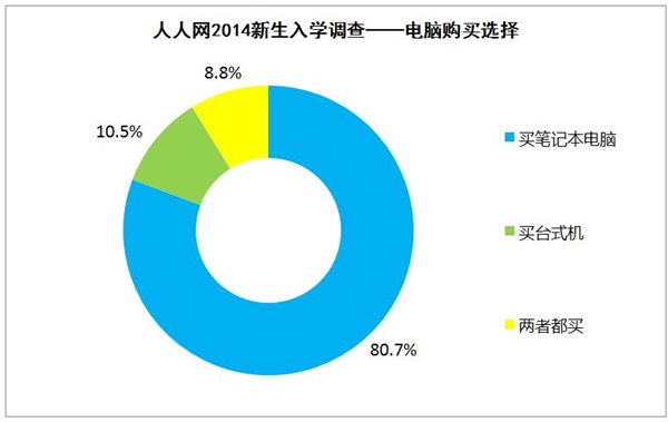 目前,PC台式机的市场不断萎缩,在大学生市场,恐怕也只有喜爱打网游的学生会愿意购买一台PC机。据记者调查,80.7%的大一新生更倾向购买笔记本电脑,购买台式电脑的占10.5%,选择两者都购买的则占8.8%。