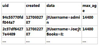 首先,我们为什么需要Session,是因为我们需要存储各个用户的状态数据。那么试问,如果由你来设计解决这个需求的方案,那么也许你会设置这样一个数据表用与存储各个用户的状态信息: