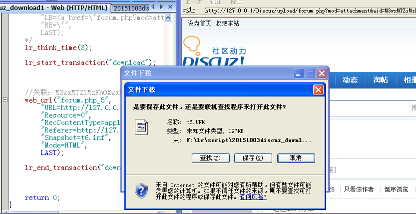 问题2:当设置LoadRunner常规选项-显示-勾选show browser during replay时,回放运行脚本,运行时查看器的窗口会弹出下载并保存的提示框,如何解决?