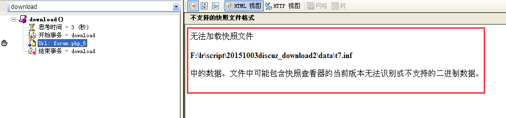 1、 运行回放下载功能脚本出现此提示的原因是服务器响应返回的只有二进制文件,并且content-type=application/octet-stream才会产生,文本文件不会出现;查看快照如图: