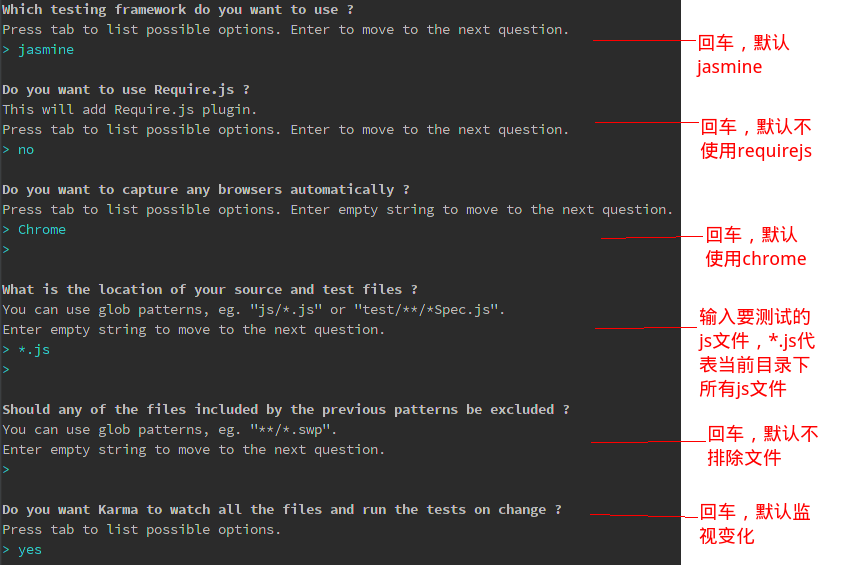 有些同学,是全局安装karma,那么请把karma-jasmine karma-chrome-launcher 也全局安装,否则会出现no provider jasmine的bug。至少在ubuntu 中是如此。