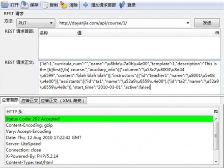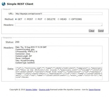 FirefoxRESTClient的插件,这款插件由国人开发,功能上支持Basic和OAuth的登录header发送,并且对于返回的XML数据还可以高亮显示