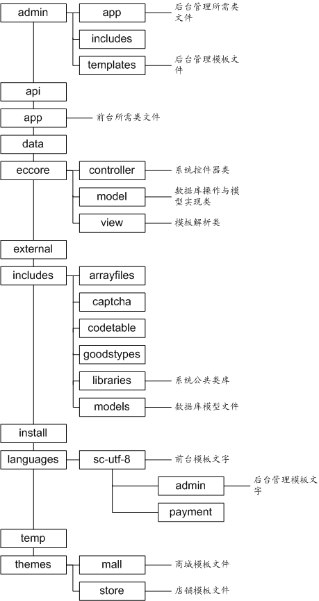 以下是ecmall的程序结构图,看了这张图,我们可以清楚的知道ecmall的程序结构。