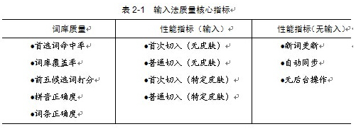 为了进一步理解产品质量要求,可以看看大家熟悉的拼音输入法有什么具体的质量要求。《Windows软件测试探秘》一书第6章给出很好的实例,如表2-1所示。