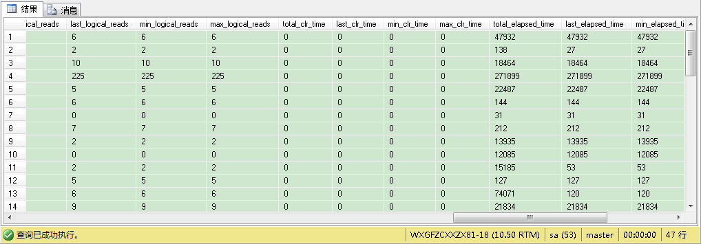 当你对sys.dm_exec_query_stats进行一个简单的SELECT查询,你会得到有很多不同列的一个非常广泛的记录集——有大量的不同数字。