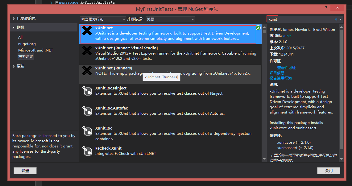下面要说的是第三种单元测试框架。为什么要选择xUnit,嗯...因为微软自己都不用自己的东西,我们还有什么理由用呐O(∩_∩)O~(关于这个3个的比较不在本文讨论范围,因为本文只是简单说两句哦)