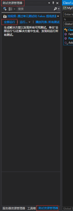 除了使用控制台命令还有其他方式吗?我大微软对程序员这么有爱,当然会提供更有爱的方式啦。那为啥还要用控制台吖,因为这样逼格高啊...vs里有个测试资源管理器的东东,如图