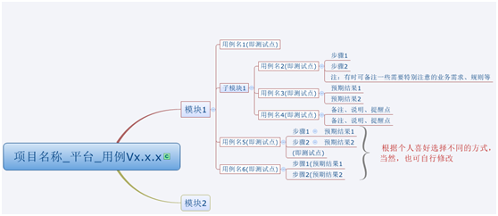 这里实际是把预期结果、操作步骤当作是子验证点(即子用例),采用第一条规则,这里的子用例仅写了用例名,即提醒点,验证点。也是说,这条用例是由一组子用例构成的。