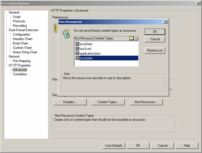 在VuGen录制器中添加content types 到'non-resources' 列表。