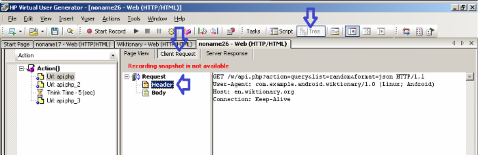 在VuGen测试停止之后,生成了测试脚本。下面是一个测试例子: