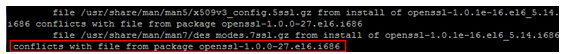 大意为:有待安装的“openssl-1.0.1e-16.el6_5.14.i686.rpm”与当前OS系统中已经安装的的“openssl-1.0.0-27.el6.i686”有冲突。