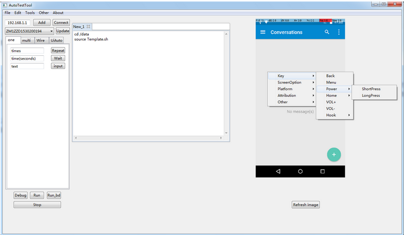 所以,写出来的测试脚本,是shell脚本,我写了一个Template.sh,这里面包含所有的通用操作,比如Click,ClickByText,PinchIn等等,其他的测试用例,都去调用这里面的方法。当然,不仅仅包含这些按键的方法,还包含测试设备状态的一些方法,比如抓取某一进程memory(使用procrank命令)使用的大小保存到一xls表格中,等